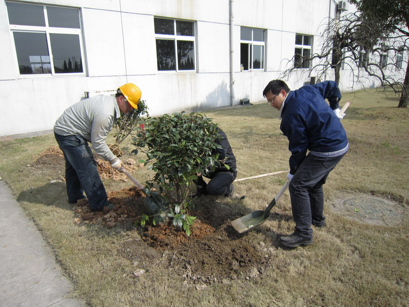 早上十点,各人就准时地群集在指定所在,先由专业职员对植树的要求和要领举行相识说,之后各人热情高涨,就连平时看着柔弱的女同胞们也最先认真地劳动。各人分工合作,有的扶树苗、有的铲土……热闹的时势温馨而快乐。一眨眼的功夫,在各人的辛勤劳动下,树苗便“亭亭玉立”在沃土上。虽然各人脚底全是土壤,但眼前这一片新生的绿意让各人满心欢喜。