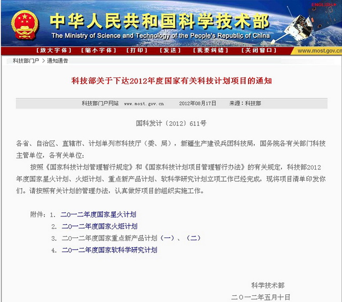 ¿ËÈÕ£¬ÖлªÈËÃñ¹²ºÍ¹ú¿ÆÑ§ÊÖÒÕ²¿¹Ù·½ÍøÕ¾Ðû²¼ÁË¡°¿Æ¼¼²¿¹ØÓÚÏ·¢2012Äê¶È¹ú¼Ò¿Æ¼¼ÍýÏëÏîÄ¿µÄ֪ͨ¡±¡£ÎÒ¹«Ë¾Ñо¿¿ª·¢µÄÈðÊæ·¥ËûÍ¡¸Æ¼°ÖƼÁÏîÄ¿±»ÁÐÈë2012Äê¶È¹ú¼Ò»ð¾æÍýÏëÏîÄ¿£¨¹¤Òµ»¯Ê÷Ä£ÏîÄ¿£©¡£