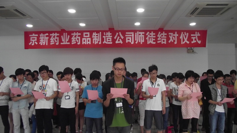 5月30日下昼,药品制造公司在公司食堂举行了师徒结对仪式,药品制造公司总司理陈绍碧、副总司理李必祥、各部分认真人、全体受聘师傅和新进员工出席仪式运动,仪式由综合办主任石萍主持。